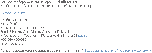 і отримує посилання для скачування скрипта генерації запиту на сертифікат, а також серійний номер, під яким зберігається його запит. Необхідно обов'язково записати або запам'ятати цей номер. Поля "Ім'я" та "Прізвище" заповнюються за правилами транслітерації української мови латиницею або так, як записано в закордонному паспорті, причому перші літери імені та прізвища мають бути великими (у верхньому регістрі), а всі інші - малими (у нижньому регістрі). Ці два поля утворюють CN (Common Name) сертифіката.