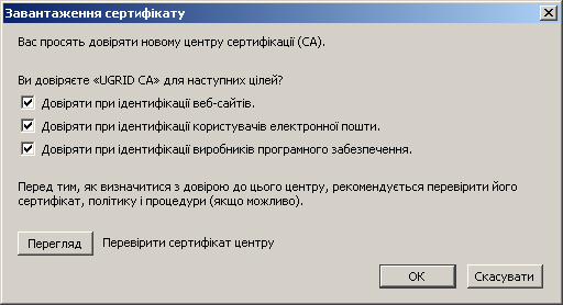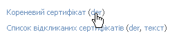 - Необхідно імпортувати в браузер кореневий сертифікат центру сертифікації UGrid CA. Для цього відкрити https://ca.ugrid.org/ca.php та вибрати DER формат кореневого сертифікату