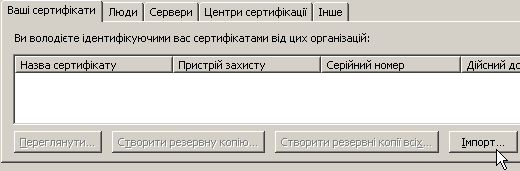 - У вікні, вибрати "Ваші сертифікати / Імпорт"